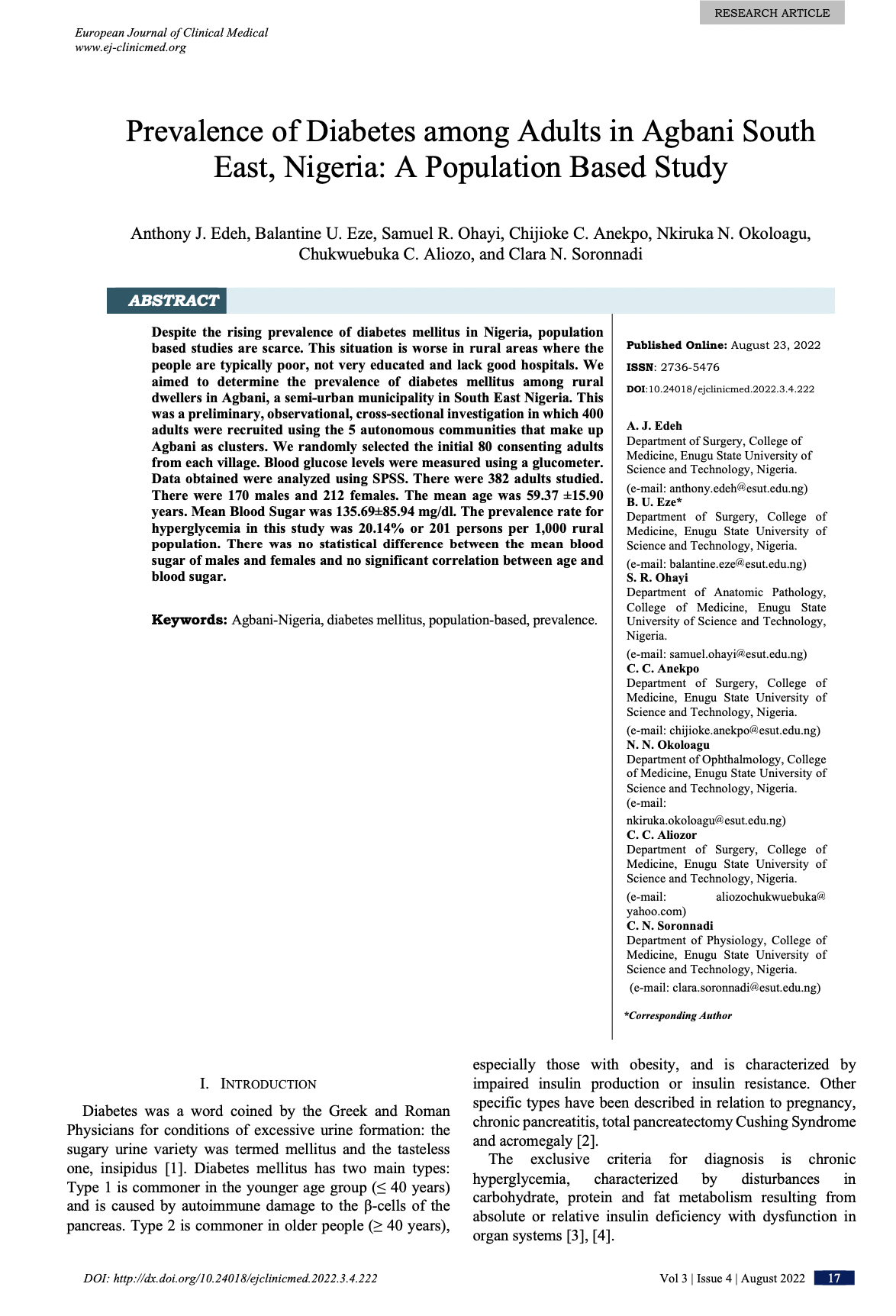 Anthony J. Edeh, Balantine U. Eze, Samuel R. Ohayi, Chijioke C. Anekpo, Nkiruka N. Okoloagu, Chukwuebuka C. Aliozo, Clara N. Soronnadi