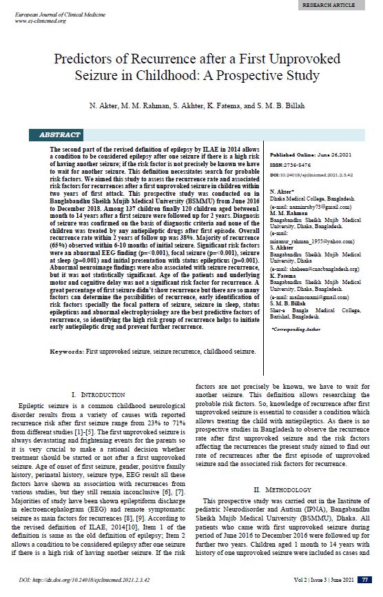 N. Akter, M. M. Rahman, S. Akhter, K. Fatema, S. M. B. Billah